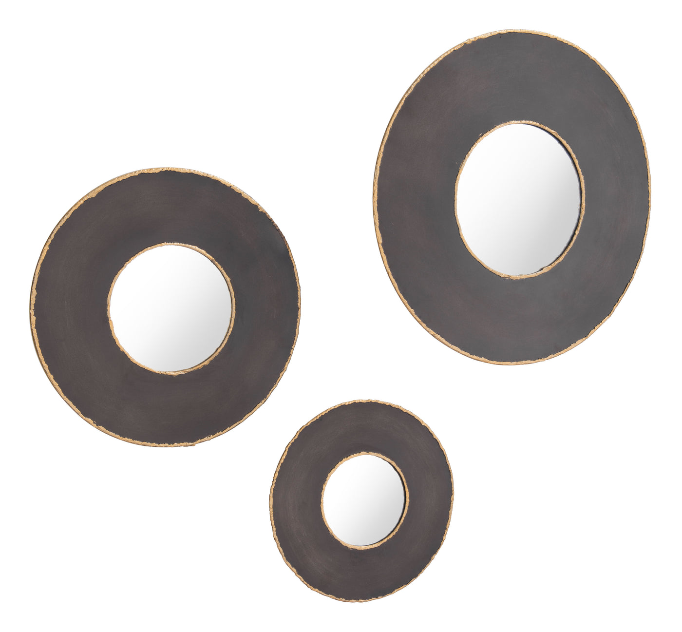 Decorative wall mirrors will attract instant attention from anyone walking into the room. This contemporary piece offers a geometric circle pattern, some filled in with a mirror others filled in glitter. Attached keyhole for hassle free hanging. Crafted from gold iron.Material: IRONColor Finishes: GOLDDimensions: 39'' L x 1.25'' W x 23.75'' HWei...