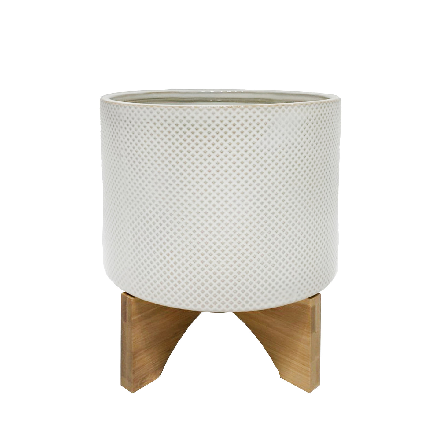 - Ceramic 7" Planter On Stand, White /Tan Dot