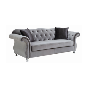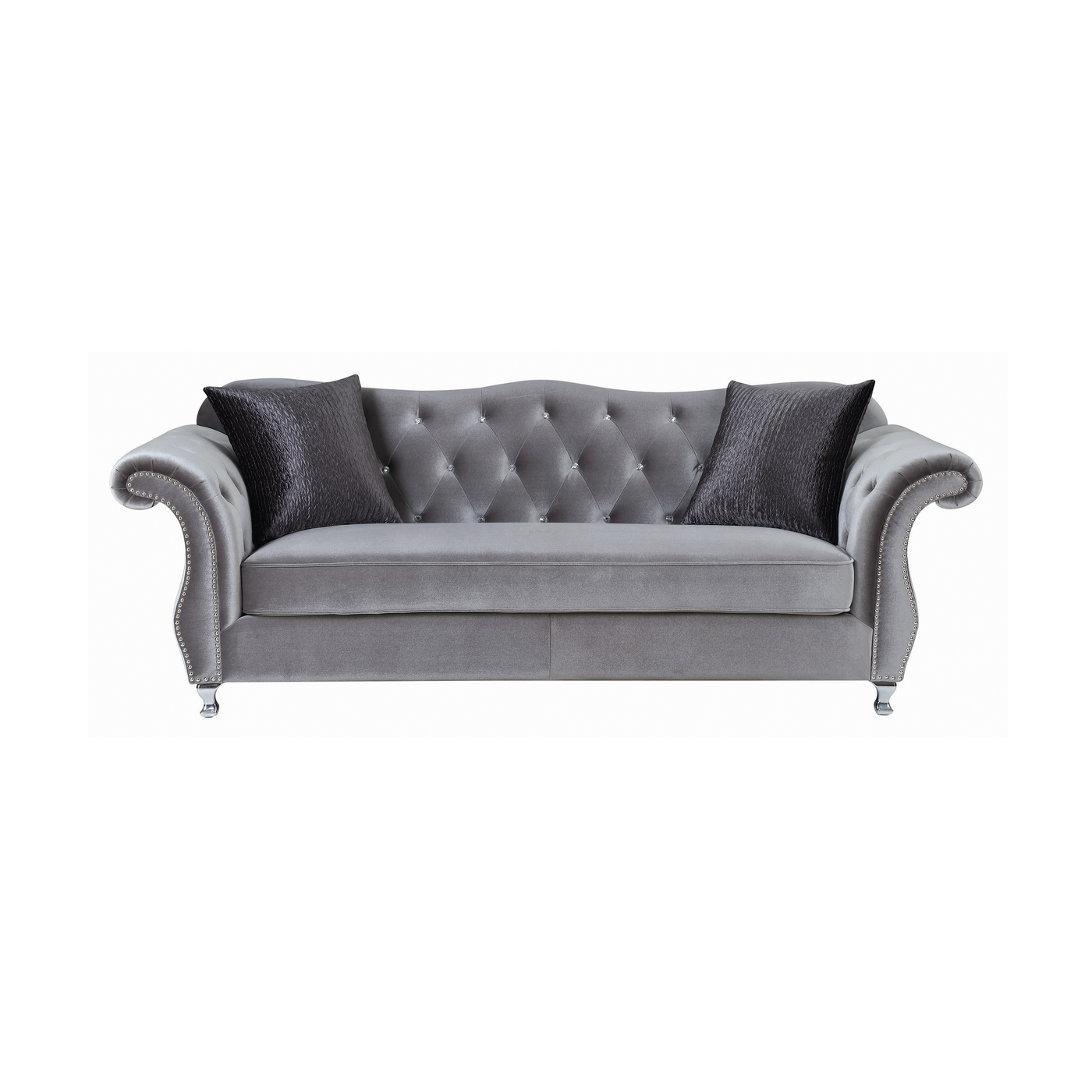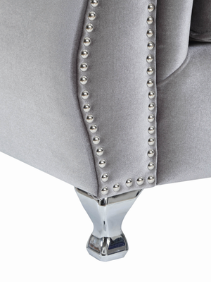{"id":4411119665250,"title":"G551161 - Frostine Button Tufted Living Room - Silver","handle":"g551161","description":"\u003cp\u003eGlam Your Interior With This Glitzy Sofa From The Frostine Collection. This Sofa’s Classic Form Gets A Swanky Upgrade With The Addition Of Polished Metal Nailhead Trim And Glimmering Crystal Tuft Buttons. Even The Decorative Legs Feature A Coating Of Chrome To Catch The Eye. Velvet Upholstery With A Silvery Sheen Completes The Look And Offers Cozy Appeal That Your Guests Are Sure To Appreciate.\u003cbr\u003e\u003cstrong\u003e551161 - Sofa\u003c\/strong\u003e \u003cbr\u003eLength: 91.25 Inches\u003cbr\u003eWidth: 34.75 Inches\u003cbr\u003eHeight: 35.5 Inches\u003cbr\u003eSeat Height: 19 Inches\u003cbr\u003eSeat Depth: 24 Inches\u003cbr\u003eWeight: 118.8 Lbs\u003cbr\u003eEye-catching glam sofa collection\u003cbr data-mce-fragment=\"1\"\u003eElegant rolled arms accented with individually placed chrome nailheads\u003cbr data-mce-fragment=\"1\"\u003eInside arms and soft camel backrest beautifully tufted and adorned with sparkling crystals\u003cbr data-mce-fragment=\"1\"\u003eQueen Anne legs in a chrome finish accentuate a graceful, curved silhouette\u003cbr data-mce-fragment=\"1\"\u003eBench seating and textured accent pillows complement the silver velvet upholstery\u003cbr data-mce-fragment=\"1\"\u003eCushions: Seat: Reversible; Back: Tight back\u003cbr data-mce-fragment=\"1\"\u003ePocket coil springs: Spring base construction for comfort and durability\u003cbr data-mce-fragment=\"1\"\u003eSinuous spring deck: Allows for a sturdy and long lasting seating\u003cbr data-mce-fragment=\"1\"\u003eFully encased solid wood frame: Construction made for stability and heavy use\u003cbr data-mce-fragment=\"1\"\u003eAccent pillows included: 2 pillows for sofa; 2 pillows for loveseat and 1 pillows for chair\u003cbr data-mce-fragment=\"1\"\u003eColor: Silver\u003cbr data-mce-fragment=\"1\"\u003eUpholstery: Velvet\u003cbr data-mce-fragment=\"1\"\u003eLeg finish: Chrome\u003cbr data-mce-fragment=\"1\"\u003eAssembly type: KD legs\u003cbr data-mce-fragment=\"1\"\u003eAssembly required: Yes\u003cbr\u003e\u003c\/p\u003e\n\u003cp\u003eBring A Touch Of Glamour To Your Living Room With This Incredible Sofa From The Frostine Collection. Crystal Buttons Glimmer From The Deep Tufting Along The Interior, While Decorative Nailhead Trim Outlines The Elegant Curves Of The Rolled Arms. Silvery Velvet-Soft Upholstery Continues The Theme And Chrome Feet Complete The Look.\u003cbr\u003e\u003cstrong\u003e551162 - Loveseat\u003c\/strong\u003e \u003cbr\u003eLength: 76.25 Inches\u003cbr\u003eWidth: 34.75 Inches\u003cbr\u003eHeight: 35.5 Inches\u003cbr\u003eSeat Height: 19 Inches\u003cbr\u003eSeat Depth: 24 Inches\u003cbr\u003eWeight: 99 Lbs\u003cbr\u003eMaterial: Pine Wood\u003cbr\u003eMaterial-1: Ply Wood\u003cbr\u003eEye-catching glam sofa collection\u003cbr data-mce-fragment=\"1\"\u003eElegant rolled arms accented with individually placed chrome nailheads\u003cbr data-mce-fragment=\"1\"\u003eInside arms and soft camel backrest beautifully tufted and adorned with sparkling crystals\u003cbr data-mce-fragment=\"1\"\u003eQueen Anne legs in a chrome finish accentuate a graceful, curved silhouette\u003cbr data-mce-fragment=\"1\"\u003eBench seating and textured accent pillows complement the silver velvet upholstery\u003cbr data-mce-fragment=\"1\"\u003eCushions: Seat: Reversible; Back: Tight back\u003cbr data-mce-fragment=\"1\"\u003ePocket coil springs: Spring base construction for comfort and durability\u003cbr data-mce-fragment=\"1\"\u003eSinuous spring deck: Allows for a sturdy and long lasting seating\u003cbr data-mce-fragment=\"1\"\u003eFully encased solid wood frame: Construction made for stability and heavy use\u003cbr data-mce-fragment=\"1\"\u003eAccent pillows included: 2 pillows for sofa; 2 pillows for loveseat and 1 pillows for chair\u003cbr data-mce-fragment=\"1\"\u003eColor: Silver\u003cbr data-mce-fragment=\"1\"\u003eUpholstery: Velvet\u003cbr data-mce-fragment=\"1\"\u003eLeg finish: Chrome\u003cbr data-mce-fragment=\"1\"\u003eAssembly type: KD legs\u003cbr data-mce-fragment=\"1\"\u003eAssembly required: Yes\u003cbr\u003e\u003cbr\u003eDeep Tufting With Glittering Crystal Buttons Elevates This Chair Design To The Next Level. Rows Of Shiny Metal Nailhead Trim Accentuates The Classic Rolled-Arm Profile That Fits Well Within A Range Of Interior Styles From Traditional To Contemporary. Upholstery In Silvery Velvet Covers Plush Cushions For A Seating Experience That Feels Just As Luxurious As It Looks.\u003cbr data-mce-fragment=\"1\"\u003e\u003cstrong\u003e551163 - Chair \u003c\/strong\u003e\u003cbr data-mce-fragment=\"1\"\u003eLength: 47.25 Inches\u003cbr data-mce-fragment=\"1\"\u003eWidth: 34.75 Inches\u003cbr data-mce-fragment=\"1\"\u003eHeight: 35.5 Inches\u003cbr data-mce-fragment=\"1\"\u003eSeat Height: 19 Inches\u003cbr data-mce-fragment=\"1\"\u003eSeat Depth: 24 Inches\u003cbr data-mce-fragment=\"1\"\u003eWeight: 71.5 Lbs\u003cbr\u003eEye-catching glam sofa collection\u003cbr data-mce-fragment=\"1\"\u003eElegant rolled arms accented with individually placed chrome nailheads\u003cbr data-mce-fragment=\"1\"\u003eInside arms and soft camel backrest beautifully tufted and adorned with sparkling crystals\u003cbr data-mce-fragment=\"1\"\u003eQueen Anne legs in a chrome finish accentuate a graceful, curved silhouette\u003cbr data-mce-fragment=\"1\"\u003eBench seating and textured accent pillows complement the silver velvet upholstery\u003cbr data-mce-fragment=\"1\"\u003eCushions: Seat: Reversible; Back: Tight back\u003cbr data-mce-fragment=\"1\"\u003ePocket coil springs: Spring base construction for comfort and durability\u003cbr data-mce-fragment=\"1\"\u003eSinuous spring deck: Allows for a sturdy and long lasting seating\u003cbr data-mce-fragment=\"1\"\u003eFully encased solid wood frame: Construction made for stability and heavy use\u003cbr data-mce-fragment=\"1\"\u003eAccent pillows include
